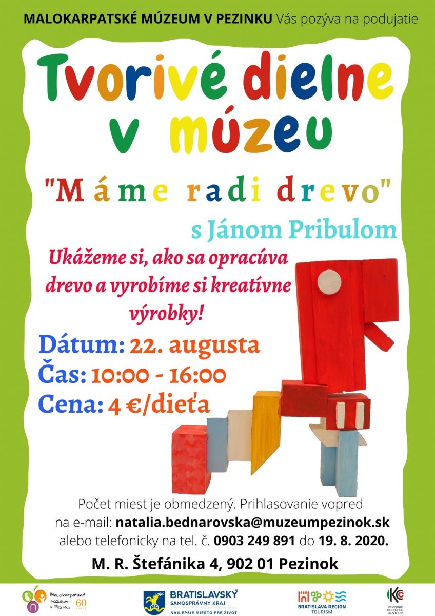 Prihlasovanie vopred na e-mail: natalia.bednarovska@muzeumpezinok.sk alebo na tel. č. 0903 249 891 do 19. augusta 2020.
