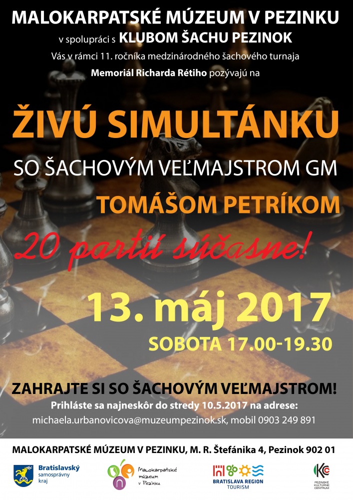 Malokarpatské múzeum v Pezinku v spolupráci s klubom šachu Pezinok pripravuje 11. ročník medzinárodného podujatia Memoriál Richarda Rétiho.