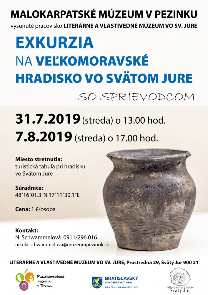Chcete prežiť krásny deň v prírode a pritom spoznať históriu hradiska vo Svätom Jure?Počas letných mesiacov si pre Vás pripravilo Literárne a vlastivedné múzeum vo Svätom Jure, dve sprevádzané prehliadky hradiska. Spoločne s pracovníkom múzea sa vyberieme na miesto hradiska, kde si lepšie pozrieme jednotlivé miesta, o ktorých si aj bližšie porozprávame. Spoznáte rôzne zaujímavosti, dozviete sa niečo bližšie o živote na hradisku, ale taktiež si povieme niečo bližšie o práci archeológov na hradisku.
