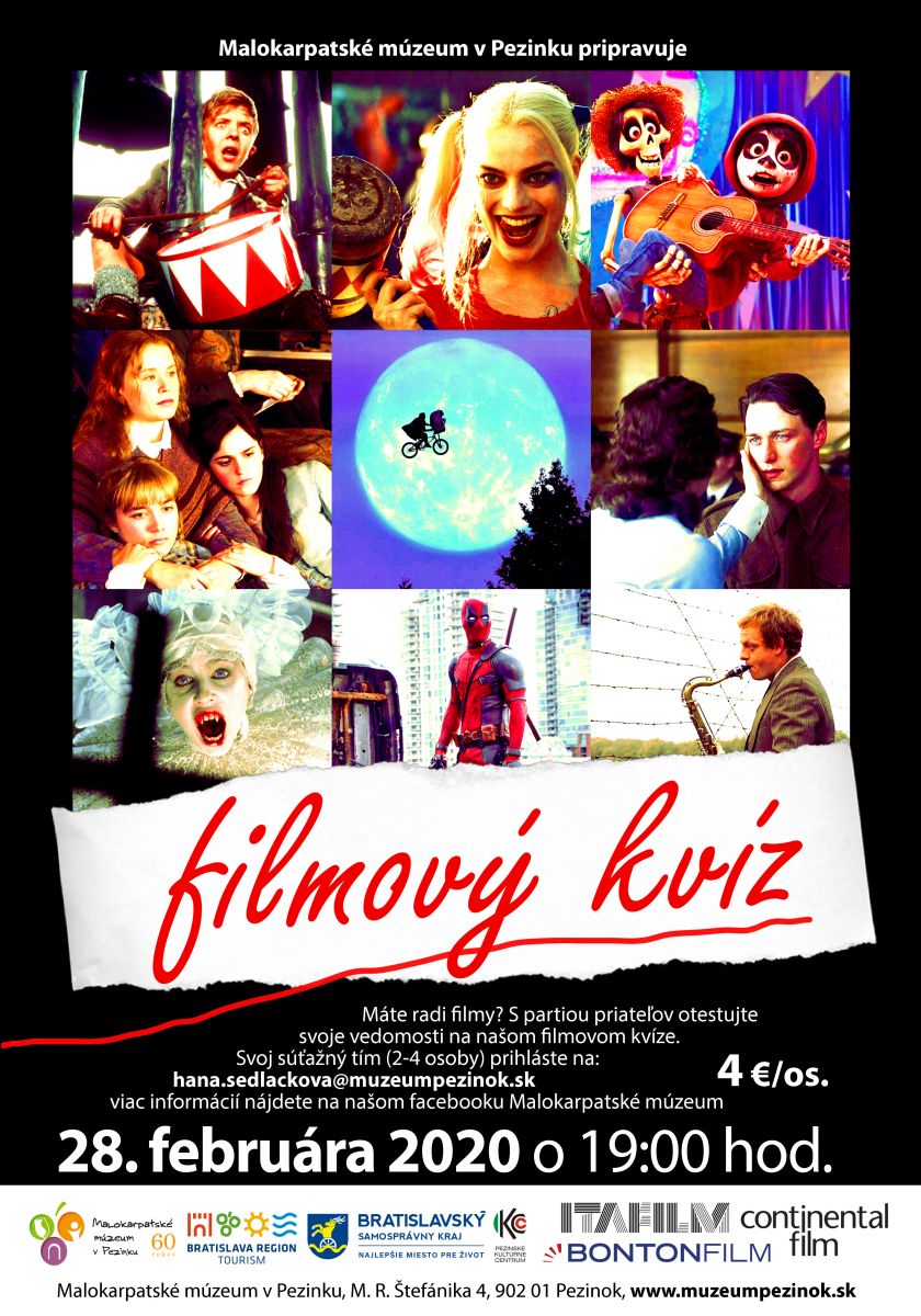 V Malokarpatskom múzeu sme pre vás pripravili ďalší filmový kvíz! Už po tretíkrát si môžete otestovať svoje znalosti z rôznych filmových tém a žánrov. Vezmite so sebou svojich kamošov a strávte s nami pohodový filmový večer. Pre víťazov kvízu sme si pripravili skvelé filmové ceny, ktoré vás istotne potešia.Na súťažiacich čakajú tri kolá otázok z rôznych filmových žánrov a postáv.
