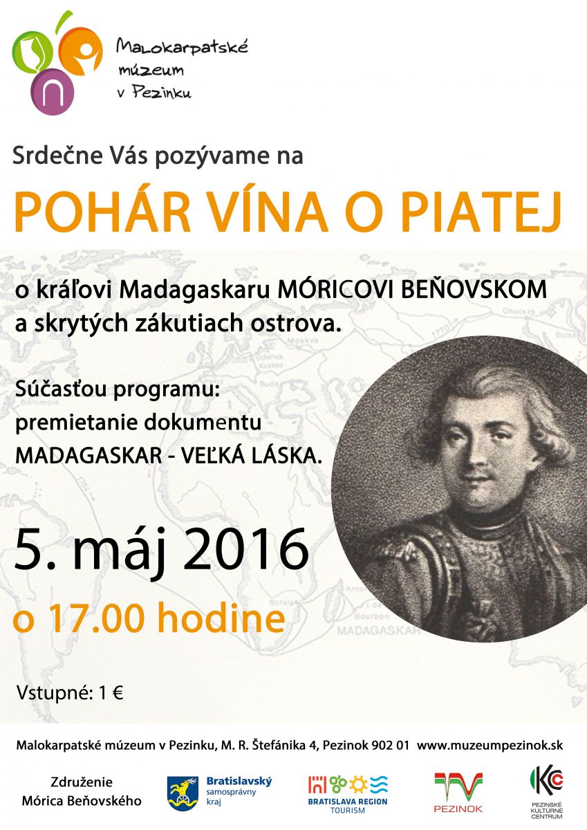 Vo štvrtok 5. mája o 17.00 hod. porozpráva o skrytých zákutiach Madagaskaru, Vladimír Dudlák, riaditeľ združenia Mórica Beňovského. Madagaskar, ktorý je štvrtým najväčším ostrovom na svete, sa vyznačuje nepoškvrnenou prírodou a zvieratami, z ktorých mnohé nenájdeme nikde inde na svete. Zároveň je najväčším svetovým producentom a exportérom vanilky. Právom je spájaný so slovenským cestovateľom Móricom Beňovským. Rodák z Vrbového, veľký dobrodruh a cestovateľ, bol prvým Európanom, ktorý sa plavil v severnom Tichom oceáne. Ako kolonizátor sa snažil ochrániť domácich Malgašanov od otrokárov, vďaka čomu si ho v roku 1776 zvolili za svojho kráľa. Dozvieme sa viac o jeho životnej ceste, s akými osobnosťami sa stretol a pozrieme si aj nový cestopisný dokument Madagaskar – veľká láska.