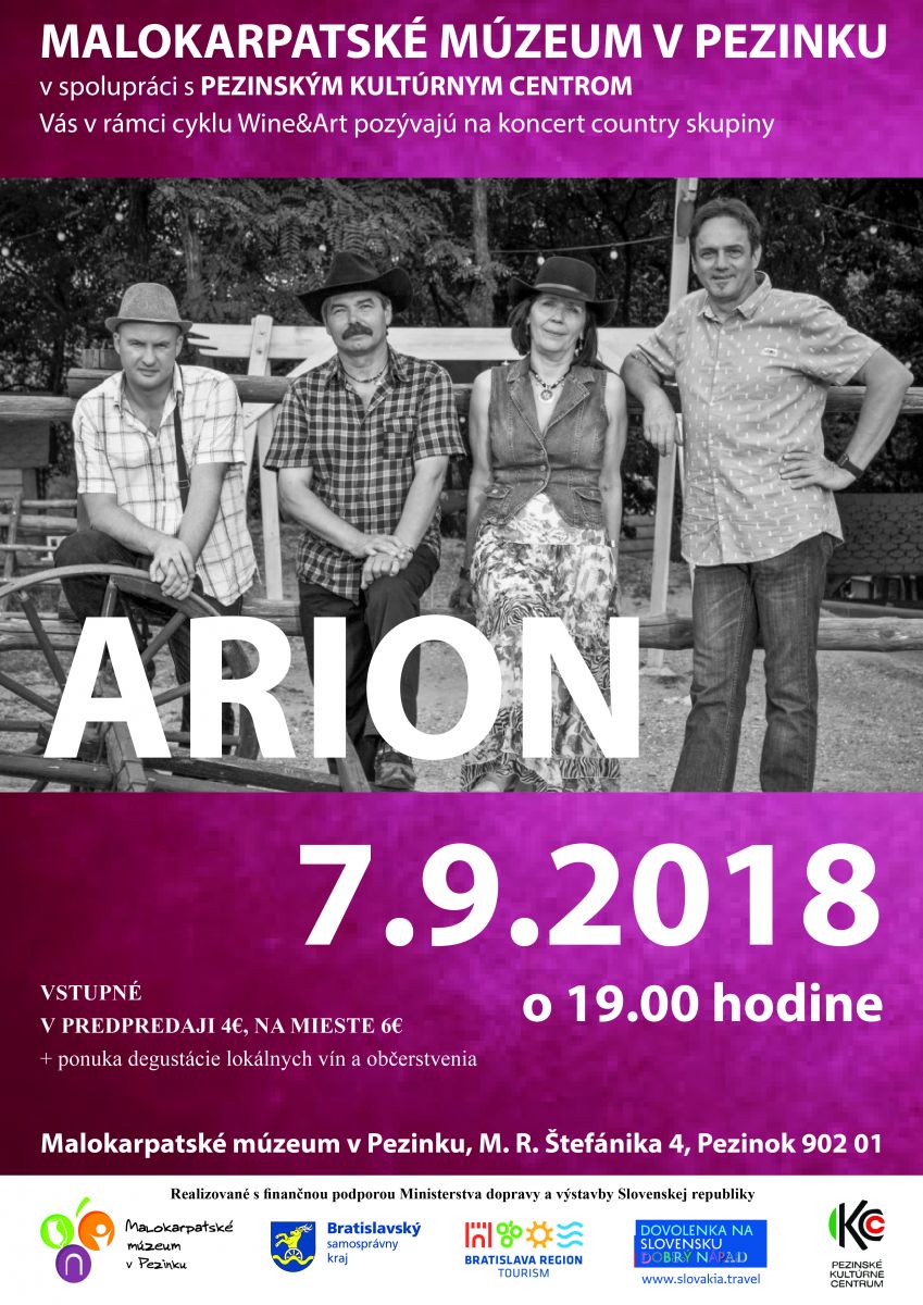 Ak máte radi country hudbu, vínko a gastronómiu, príjmite pozvanie na posledný tohtoročný umelecký večer - Wine and Art. Hudobná skupina ARION zahrá v piatok 7. septembra od 19.00 hod. na dvore múzea.