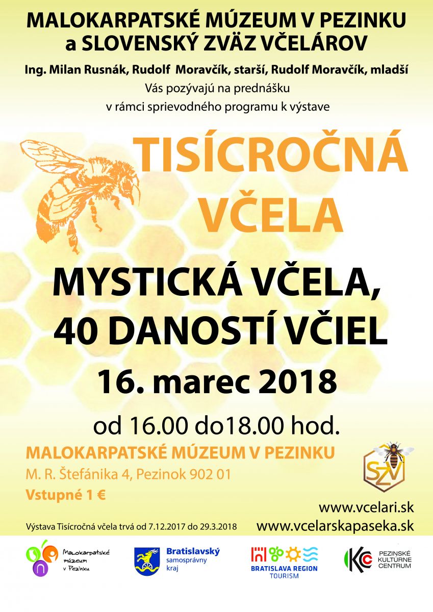 Milí návštevníci,v spolupráci s p. Rudolfom Moravčíkom pre Vás pripravujeme posledný sprievodný program k výstave Tisícročná včela. Od správcu Múzea včelárstva v Kráľovej pri Senci p. Moravčíka sa dozviete o včelách viacero zaujímavostí. Vedeli ste napr., že na získanie 1 kg medu musí na zbere nektáru pracovať približne 1100 včiel? Poznáte vopred určený osud trúdov?