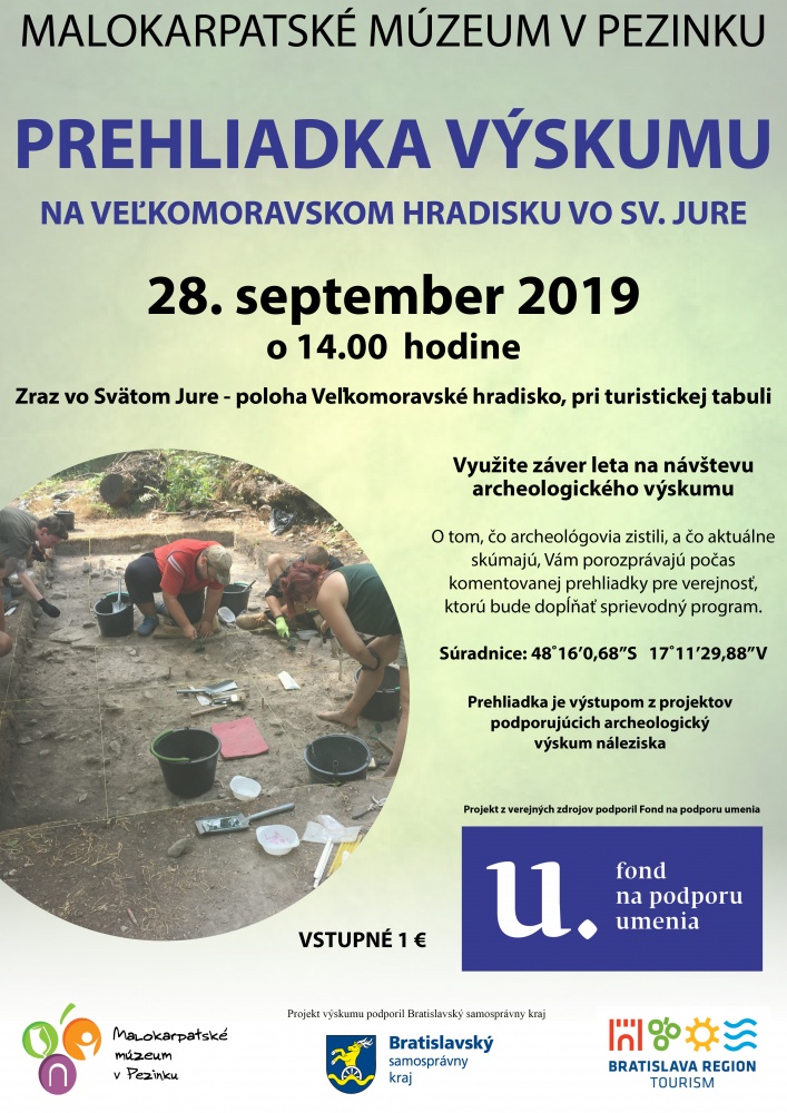 Veľkomoravský hrad vo Svätom Jure v štruktúre opevnení Malých KarpátMalokarpatské múzeum v Pezinku skúma jeden z najznámejších drevozemných, veľkomoravských hradov na našom území, ležiaci v sústave slovanských pevností na juhozápade Malých Karpát. Pomenovania dvoch významných hradov v oblasti, v Devíne a v Bratislave dokonca zaznamenali písomné pramene. Tretím, mimoriadne významným sídlom bol hrad vo Svätom Jure, ktorého meno sa však nedochovalo, obdobne ako u iných, menších fortifikácii, ktoré budú podrobené prieskumu.
