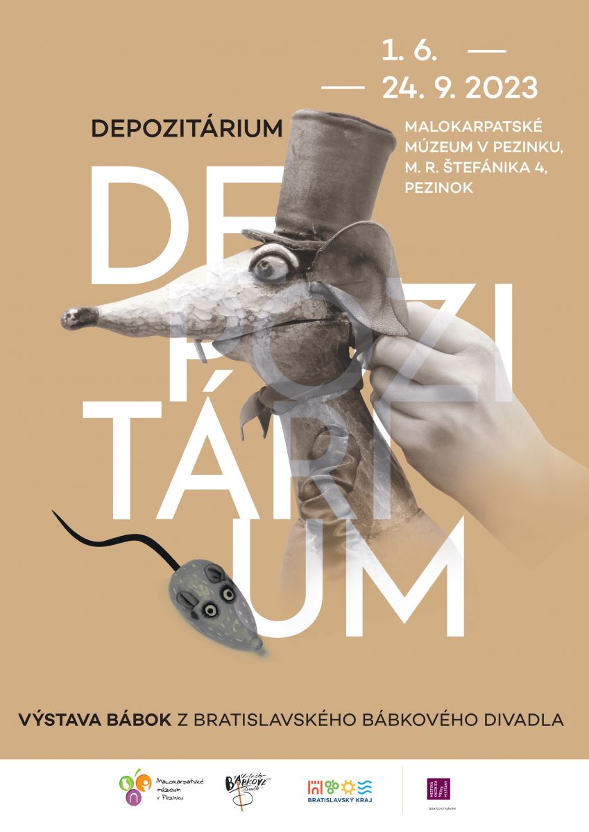 Pozývame vás na výstavu Depozitárium, ktorá v múzeu bude prebiehať od 1. júna do 24. septembra 2023.Bábky vykukli zo skladov Bratislavského bábkového divadla a my sme ich s kurátorkou výstavy, scénografkou Martinou Fintorovou privítali v našich priestoroch Malokarpatského múzea v Pezinku. Malí a veľkí návštevníci majú možnosť objavovať, skúmať a odkrývať, čo je bábkové divadlo, aké profesie sa podieľajú na príprave bábkových divadelných hier, ako sa rodia-robia bábky a koľko času je potrebného na ich prenesenie z fantázie do reálneho sveta.